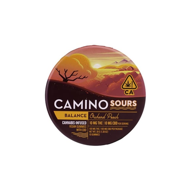 Come back to center as the vivid rays of twilight hour sweep across rolling orchard hills. Orchard Peach Camino Sours are characterized by tart notes of lush, ripe peach with a balancing blend of THC and CBD with hybrid-like terpenes.