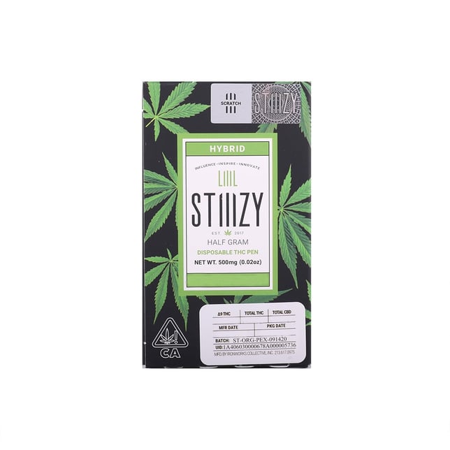 This hard-hitting Hybrid gives the user a long lasting potent high, with lots of creative and focused energy. It starts with a sweet flavor on the tongue, leaving you with notes of pine, tropical fruit and earth. This phenotype is a well-balanced blend of Trainwreck and Pineapple and the euphoric, energetic high is perfect for taking a scenic walk. STIIIZY's distillates are handcrafted through a solvent-free distillation process using only top-shelf quality concentrates and cannabis-derived terpenes. Packing a big punch in a LIIIL package. LIIIL STIIIZY is the ultimate portable, disposable vape that delivers great taste and bigger clouds. Its simplicity and portability make LIIIL STIIIZY a crowd favorite. STIIIZY PODS ARE ONLY COMPATIBLE WITH THE STIIIZY BATTERY.