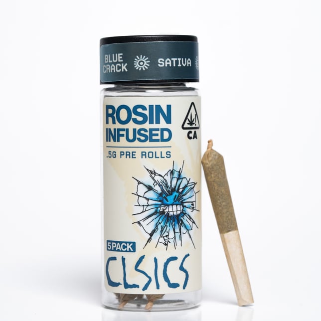 All CLSICS rosin infused pre rolls are handcrafted from start to finish. These products begin with carefully curated strain specific cannabis which is then infused with our in house processed fresh frozen ice water hash rosin extracted from meticulously procured strains selected for their unique terpene profiles to deliver a delicious, mouthwatering connoisseur level solventless experience.