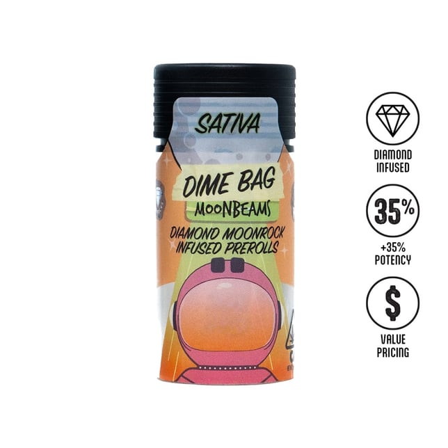 Designed for lift-off and sharing the ride. Dime Bag Moonbeams Packs feature half-gram infused pre-rolls made with liquid diamonds for powerful, flavorful hits. High potency, pocket-friendly, and perfect for intergalactic vibes with friends.