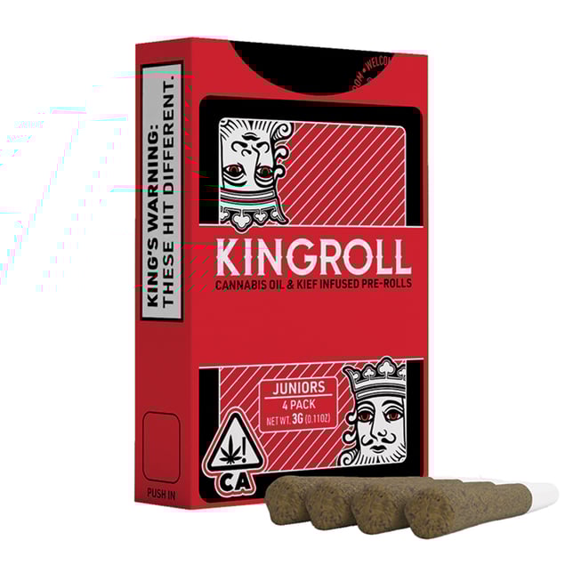 Every box of Juniors contains 4 individual .75 gram kief coated pre-rolls, infused with Kingpen’s cannabis oil and combined with high-quality flower. Great for multiple clean, slow-burning seshes.
