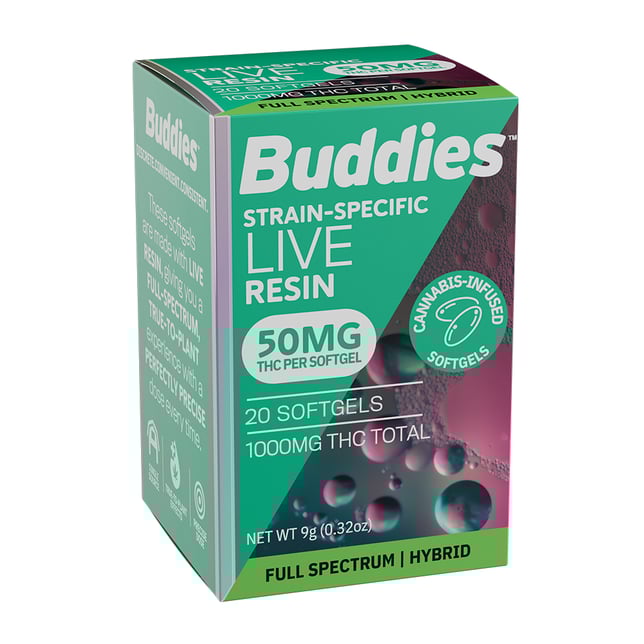 Experience Buddies’ high-quality Live Resin formula with maximum convenience with our pharmaceutical grade softgels. Available in bottle and trial sizes, each softgel captures a full spectrum of strain-specific cannabinoids and terpenes, providing a synergistic effect ideal to a well-rounded cannabis experience. Conceived to pair precise dosing with a discreet form, our softgels are perfect for any situation and ideal for those who prefer a method that’s familiar.