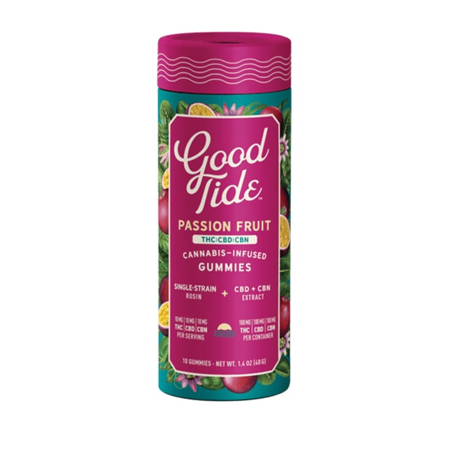 Take your mellow to the next level with Good Tide Passion Fruit THC:CBD:CBN gummies.