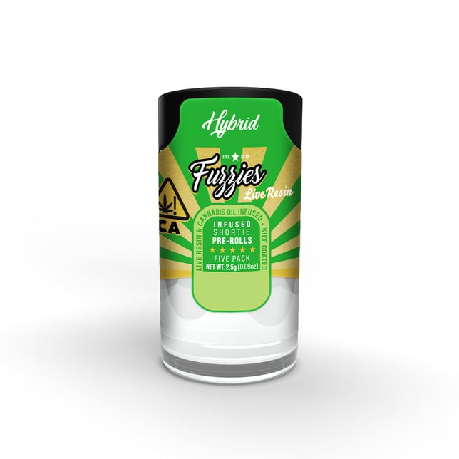 Elevate your sessions with our 3.5G Fuzzies Live Resin 5-Pack. Each .7G preroll is infused with live resin sauce and cannabis oil, then rolled in kief for a burst of flavor and potency. Perfect for sharing or savoring solo, this multipack offers a powerful, terpene-rich experience in every puff.