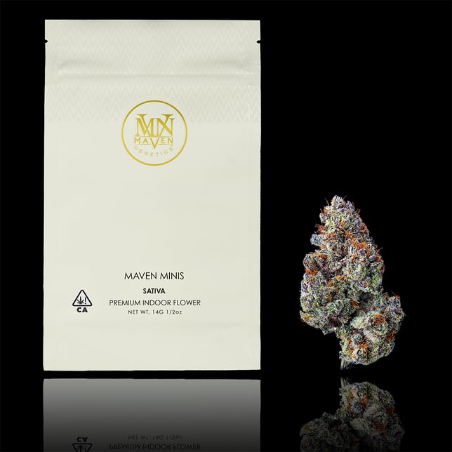Whether you are an experienced connoisseur or a novice, Maven Minis offer the perfect balance of quantity and quality, delivering the same high caliber experience as our full-sized flower, but in a convenient and travel-friendly package. These compact 14g Mylars may contain smaller nugs - but don't be fooled by their size! Each bag is packed with the same nuanced, top-tier Maven Genetics strains you know and love.