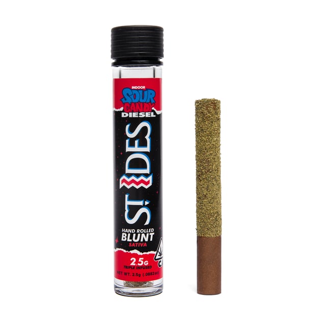 Meet the power punching ST IDES 2.5g blunt. This blunt features whole nugs of premium indoor, hand-broken flower, and consistently tests above 40% THC. It’s triple infused with diamonds, hash, then generously coated in kief. Each blunt has a glass tip and is hand rolled for that personal touch.