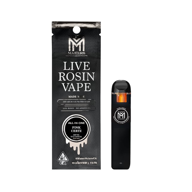 All of Master Makers live rosin vapes are made in-house from premium ice water hash 90 & 120 micron trichomes. No harsh chemical or solvents means that the the end result is a clean and pure toke that is truly representative of the plant.
