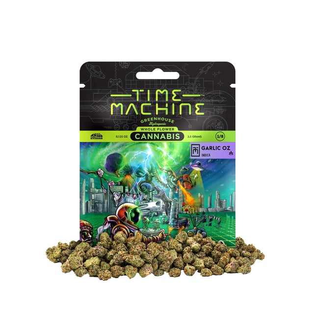 Step into the Time Machine and experience cannabis like never before! Our hydroponic greenhouse-grown flower is a blast from the past with a futuristic twist, cultivated in state-of-the-art greenhouses that combine the sunny vibes of the ‘70s with tomorrow’s technology. We’ve mastered a closed-loop system that reuses water like it’s 2099, making each puff a guilt-free trip through time. Picture yourself lounging in a ‘90s neon rave or cruising in a classic ‘80s convertible—this is cannabis that captures the essence of every decade, all while pushing the boundaries of what’s possible. Whether you’re sparking up to reminisce or to forge new memories, our flower is your ticket to a timeless experience. Available in 1/8oz (3.5g), 1/4oz (7g), 1/2oz (14g), and 1oz (28g) pouches. Smoke like the future depends on it!
