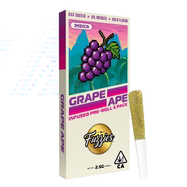 Grape Ape comes equipped with bold grape terps and heavy-hitting indica effects that knock stress out like the final boss. Infused with premium oil and coated in golden kief, these pre-rolls are built for maximum relaxation. Game over for bad vibes.