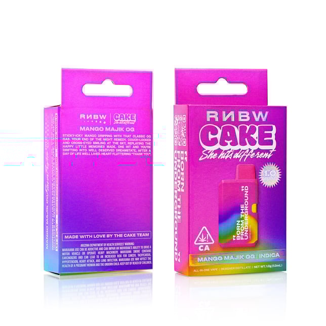 The RNBW X CAKE collaboration was inspired by our shared origin stories. Both the rave and cannabis cultures were forced into the shadows - misunderstood, criminalized, and outlawed by society. For decades, association with either could cost you your reputation, your freedom, even your future. So these worlds were created in secret: hidden rooms, abandoned spaces, remote fields, backyards, and garages. Kept alive by the brave souls who dared to believe in the joy, healing, connection, and freedom they offered.
