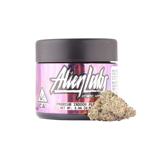 Atomic Apple (Triangle Mints x Apple Fritter) is truly out of this world with its beautiful bud structure looking like a meteor coming out of orbit. Tastes like sour apple candy with hints of fuel and vanilla cream terps. The high testing cannabinoid profiles will take you to another dimension.